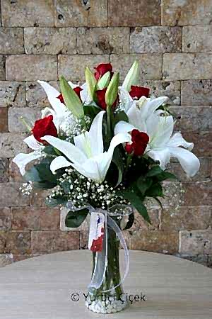 Description: If you are looking for a gift worthy of her love glass vases of red roses and white lilies and flowers you are looking for a full five.
