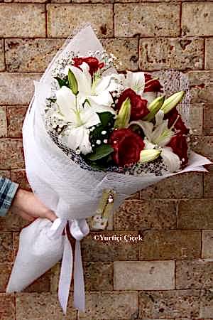 Description: White Lilies: 3 Dal, Red Rose: 6 Piece Special days are special flowers. Prepared with a bouquet of white lilies and red roses crowned immortal moments.