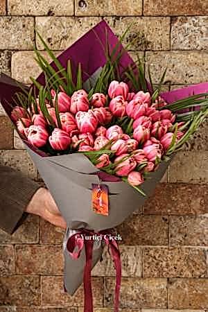 Description: 41 pieces You will make your loved ones happy with a special bouquet made of pink tulips.