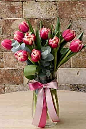 Description: It's time to present all the beauty of the Layered Pink Tulips in a Vase to you. Come on now, have a day full of beauty. Item Size: 30 cm