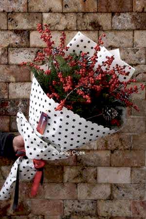 Description: Green leaves accompany our bouquet prepared with 6 Ilex (ilex) and 5 cones. With you to gift the spirit of the new year to your loved ones!