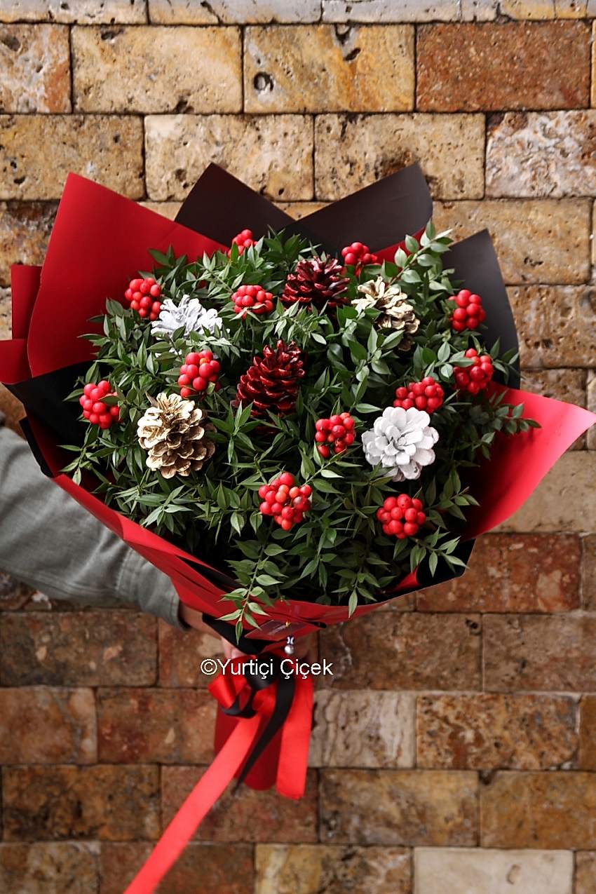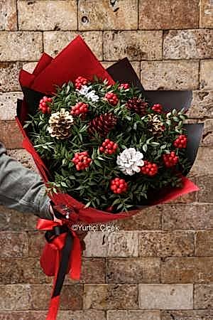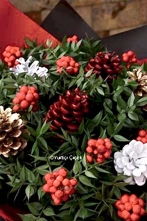 Description: Our bouquet prepared with 10 kokina and 5 beautiful pine cones is with you.